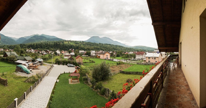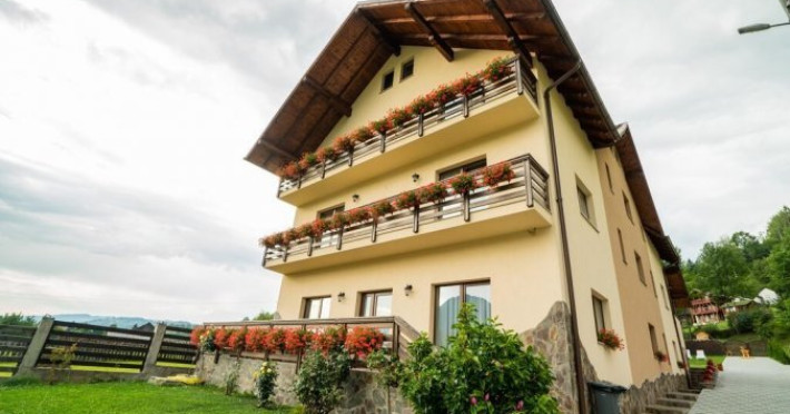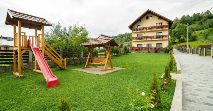 Gradina spatioas de aproximativ 4000 mp, cele dou terase din lemn Si balcoanele pline cu flori creeaz o ambiant placut. Arhitectura cu specific montan, care imbina elemente din lemn masiv si piatr, aerul curat de munte si imprejurimile fac din aceast pensiune o locatie perfect pentru odihn, in intimitate.Dac sunteti stui de forfota si stresul orasului, v puteti relaxa citind o carte pe sezlong sau in hamac, fcand o binemeritat baie de aer si soare, iar seara putesi savura un pahar de vin pe teras, intr-o companie plcut.