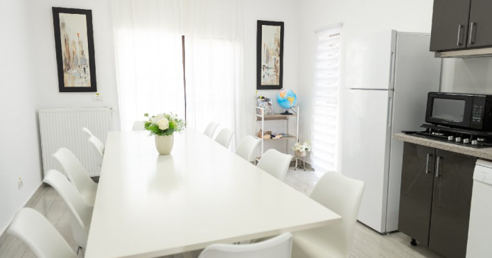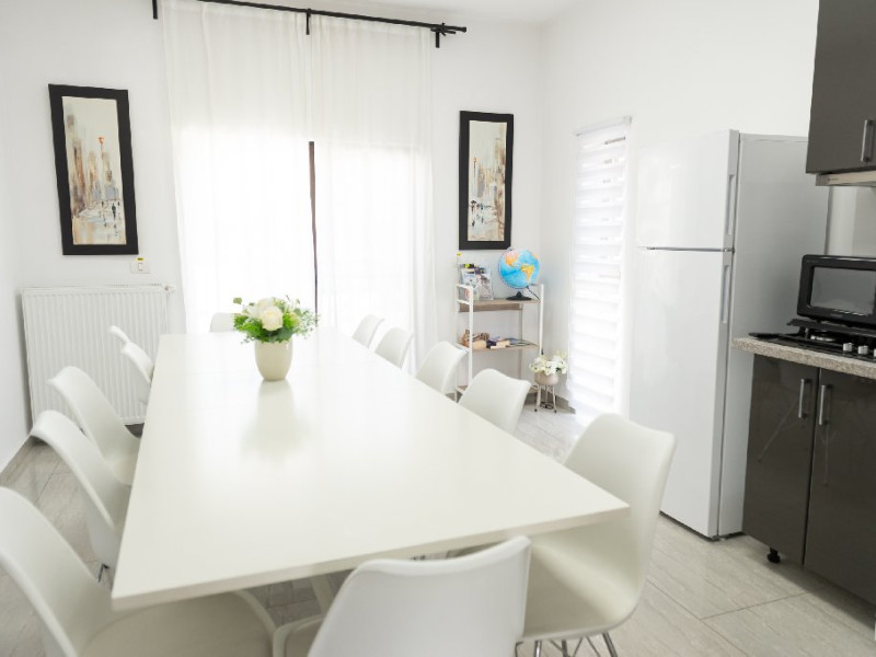 Oaspetii au acces la o zona comuna de socializare, dotata cu o masa mare, TV Smart, Wi-Fi, fierbator de apa, frigider, cuptor cu microunde si scaun pentru copii.