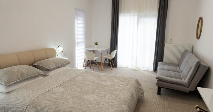 Cele 10 camere moderne si spatioase sunt dotate cu tot confortul necesar:mini frigider, espressor de cafea si cafea, produse de igiena personala, uscator de par, halate, prosoape si papuci, TV Smart si Wi-Fi gratuit.