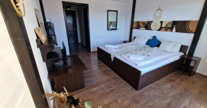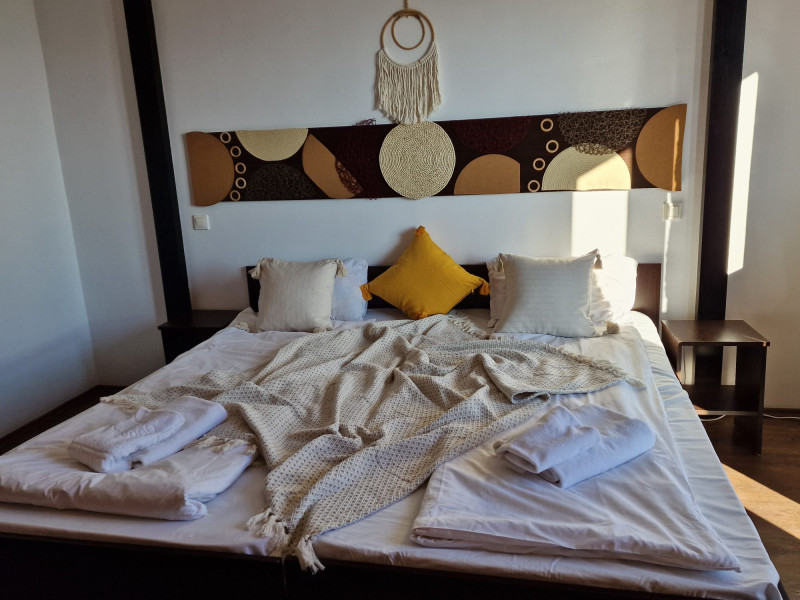 PENSIUNEA HANUL DORULUI SE AFLA IN DRUMUL CARULUI ,LA 7,3KM DE CASTELUL BRAN SI OFERA O GRADINA ,O TERASA +RESTAURANT SI PARCARE PRIVATA GRATUITA .PROPRIETATEA SE AFLA LA 21 KM DE DINO PARK ,LA 37KM DE PIATA SFATULUI .ACEASTA PENSIUNE ACCEPTA SI ANIMALE DE COMPANIE ,OFERA DE ASEMENEA SI WI GRATUIT. LA ACEASTA PENSIUNE TOATE CAMERELE AU DULAP PENTRU HAINE ,BALCON CU VEDERE LA MUNTE ,BAIE PROPRIE ,TELEVIZOR ,LENJERIE DE PAT SI PROSOAPE. BAIA PROPRIE OFERA UN DUS SI ARTICOLE DE IGHIENA GRATUITE . PPENSIUNEA DISPUNE DE 14 LOCURI DE CAZARE IN 7 CAMERE DUBLE . UN SEJUR PETRECUT AICI PROMITE RELAXARE SI REVITALITE ,INTR-UN CADRU DE VIS DEPARTE DE AGITATIA COTIDIANA.Datorita dinamicitatii domeniului disponibilitatea ofertelor se modifica de la un moment la altul. De aceea ofertele sunt valabile in limita locurilor disponibile. Agentia nu este responsabila pentru eventualele neconcordante care pot aparea intre informatiile privind tarifele si alte detalii din site si informatiile primite in agentie. In aceste cazuri vor avea prioritate, intotdeauna, informatiile primite in agentie.