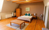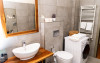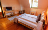 Camera QUEEN: pe o suprafata de 18 mp, cu un design si culori armonioase, domina culoarea portocalie. Camera are baie proprie amenajat in stil organic, in care fiecare detaliu te incanta. Dotari: televizor full HD, baie proprie cu dus si uscator de par.