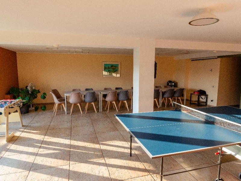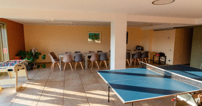 Incaperea este dotata modern, punand la dispozitie internet Wi-Fi, video-proiector si flipchart, dar si instrumente pentru o pauza reusita: darts,masa tenis si masa de fotbal.