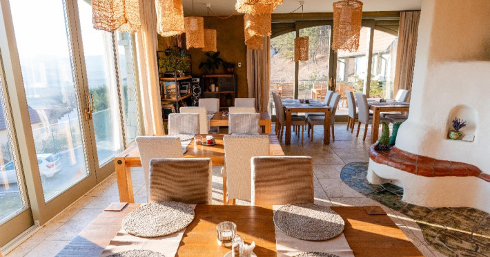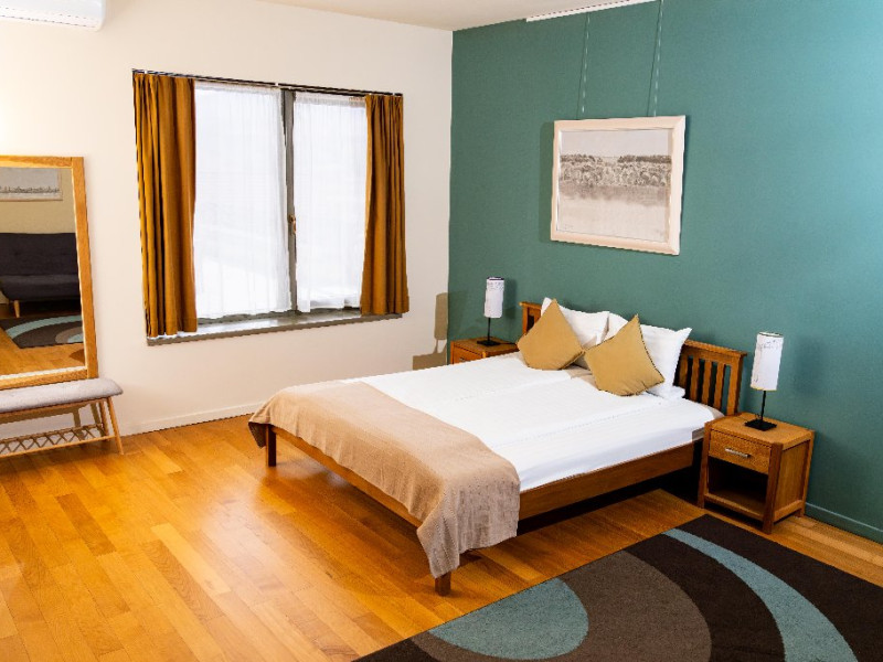 Pensiunea ofera 5 camere spatioase si luminoase, fiecare fiind dotata cu o baie proprie cu un design organic, in care modernul se imbina armonios cu stilul traditional. Exista si un apartament cu intrare separata si terasa privata, compus din 2 dormitoare, 2 bai, camera de zi, sufragerie cu bucatarie integrata si complet echipata ce ofera gazduire celor care doresc intimitate si confort, chiar pe o perioada mai lunga.
