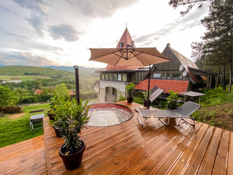 INFORMATII GENERALE:Pensiunea - castel Harmonia Mundi se inalta pe panta dealului si se afla pe locul cel mai frumos din zona. Locul nu a fost ales intamplator. Privelistea este cu adevarat incantatoare! De aici te poti bucura de panorama oferita de Muntii Apuseni.