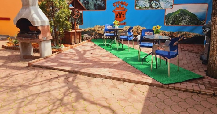 Pensiunea Kyfana este situata la 300 de metrii de centrul orasului Zarnesti, intr-o zona retrasa si va pune la dispozitie camere curate, servicii de calitate si un climat prietenos !La noi va puteti caza in 10 camere duble sau o tripla care ofera o priveliste minunata spre Piatra Craiului doatate cu pat matrimonial, tv, cablu, internet, incalzire centrala si o camera in regim de apartament care ofera o priveliste minunata spre muntii Piatra Craiului.