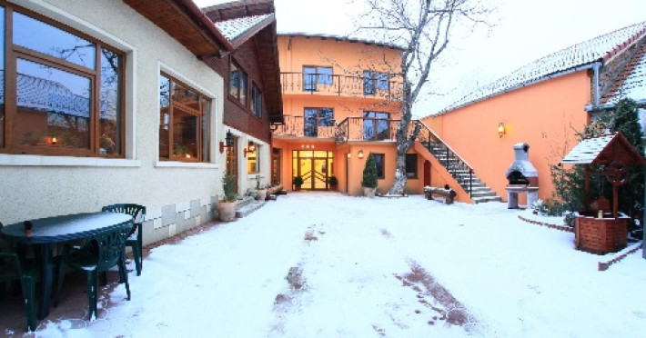 Pensiunea Kyfana este situata la 300 de metrii de centrul orasului Zarnesti, intr-o zona retrasa si va pune la dispozitie camere curate, servicii de calitate si un climat prietenos ! La noi va puteti caza in 10 camere duble sau o tripla care ofera o priveliste minunata spre Piatra Craiului doatate cu pat matrimonial, tv, cablu, internet, incalzire centrala si o camera in regim de apartament care ofera o priveliste minunata spre muntii Piatra Craiului. Pensiunea are terasa exterioara, gratar in curte, servicii de masa demipensiune, internet Wi-Fi gratuit, loc de parcare . Situata langa munte puteti face plimbari pe traseele din Muntii Piatra Craiului, plimbari 4*4, camping langa rauri sau munti, vizita la stana unui cioban, plimbare cu caruta trasa de cai. Muntii care inconjoara Zarnestiul sunt impanziti de trasee de catarat avand diverse garde de dificultate de la usor la moderat. Zona ofera ocazia perfecta pentru a va bucura de natura. Va oferim posibilitatea alegerii mesei cu mic dejun, demipensiune, exsita si loc de gratar in curte, iar pizza se serveste la pizzeria proprie Casa Romaneasca ! Alte posibilitatile de petrecere a timpului liber sunt: motocros pe pista de motocros (4 km departare), plimbari calare (echitatie), vizitarea Cetatii Rasnov, vizitarea Castelului Bran, drumetii in Poiana Brasov, plimbari sau alpinism in Prapastiile Zarnestiului, si multe altele. Orasul Zarnesti este un paradis al iubitorilor naturii. Dealurile cu pante line ale Transilvaniei, varfurile muntoase din Piatra Craiului si padurile maiestoase va ofera posibilitatea sa va bucurati de natura si sa scapati de zgomotul si de poluarea vietii la oras. Padurile sunt deasemenea adapost pentru o mare varietate de animale salbatice care pot fi usor observate la urcusul pe poteci. Cu putina rabdare si fara a face zgomot, turistii norocosi vor putea observa caprioare,pasari, vulpi si arici. Avem numai turisti care pleaca de la noi fericiti, puteti sa verificati calificativele noastre si veti vedea ca la noi este alegerea perfecta pentru a va petrece concediul sau wekendul .Datorita dinamicitatii domeniului disponibilitatea ofertelor se modifica de la un moment la altul. De aceea ofertele sunt valabile in limita locurilor disponibile. Agentia nu este responsabila pentru eventualele neconcordante care pot aparea intre informatiile privind tarifele si alte detalii din site si informatiile primite in agentie. In aceste cazuri vor avea prioritate, intotdeauna, informatiile primite in agentie.