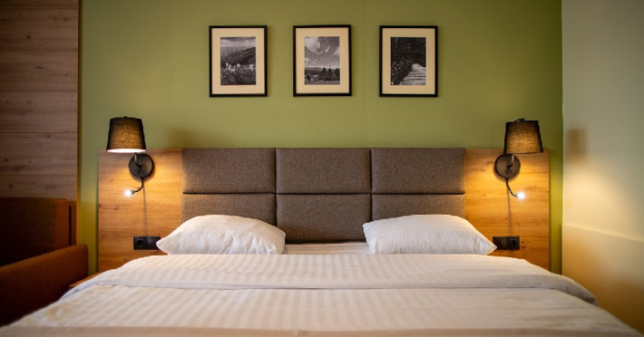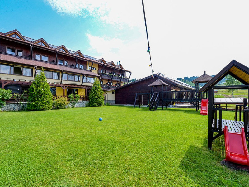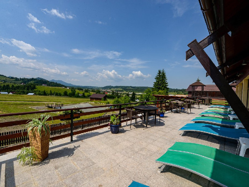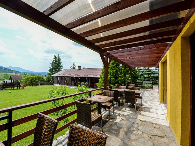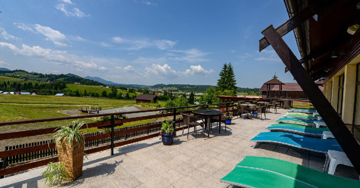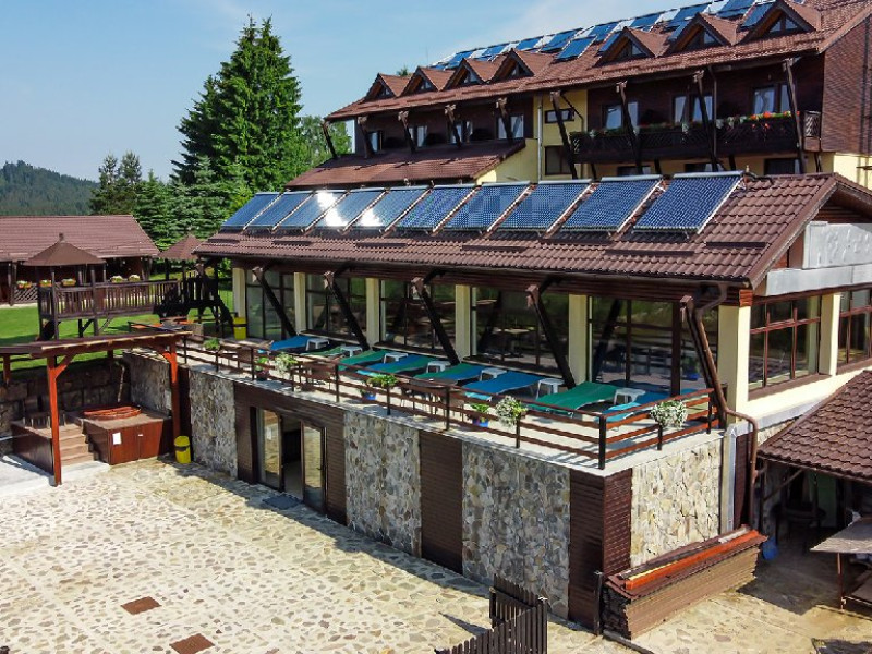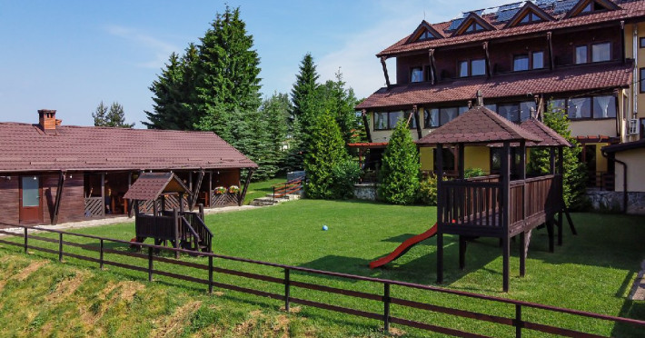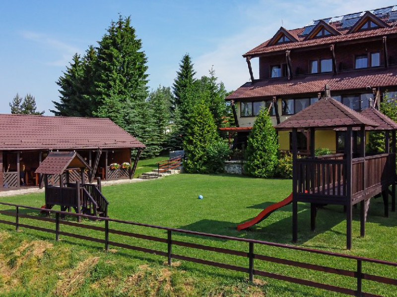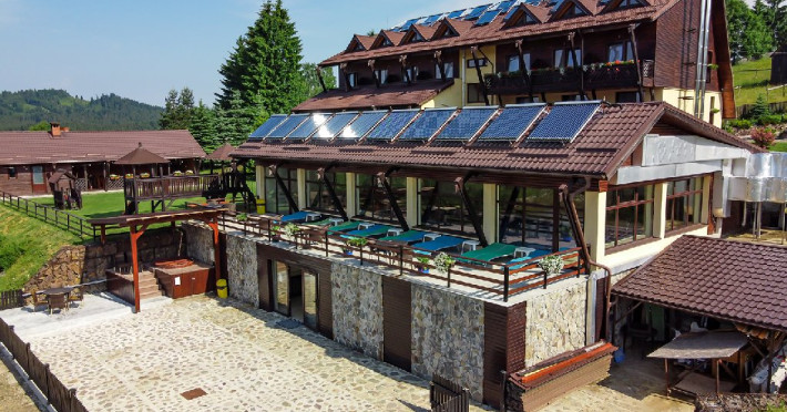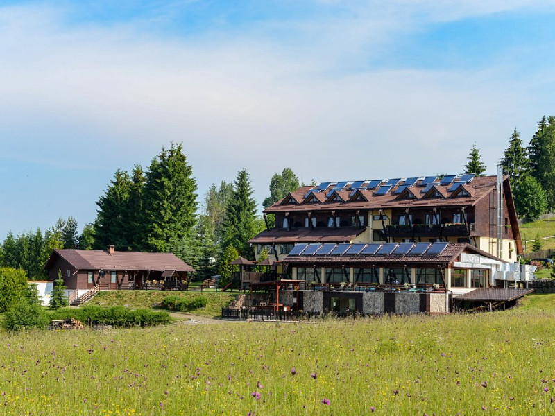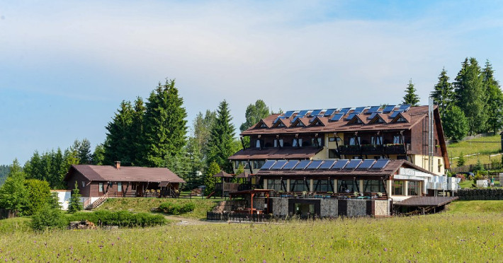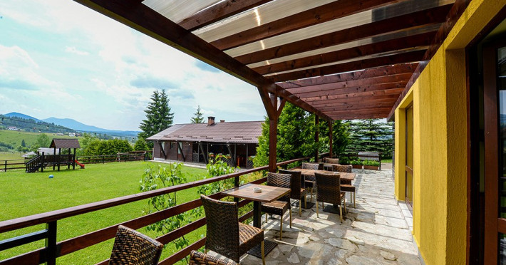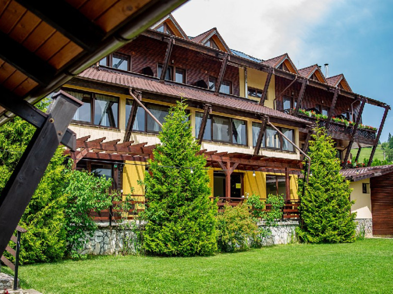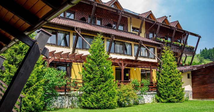 Pensiunea se remarca prin arhitectura moderna combinata cu specificul Bazinului Dornei, iar suprafata construita se echilibreaza cu un spatiu verde generos si un peisaj de vis.