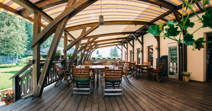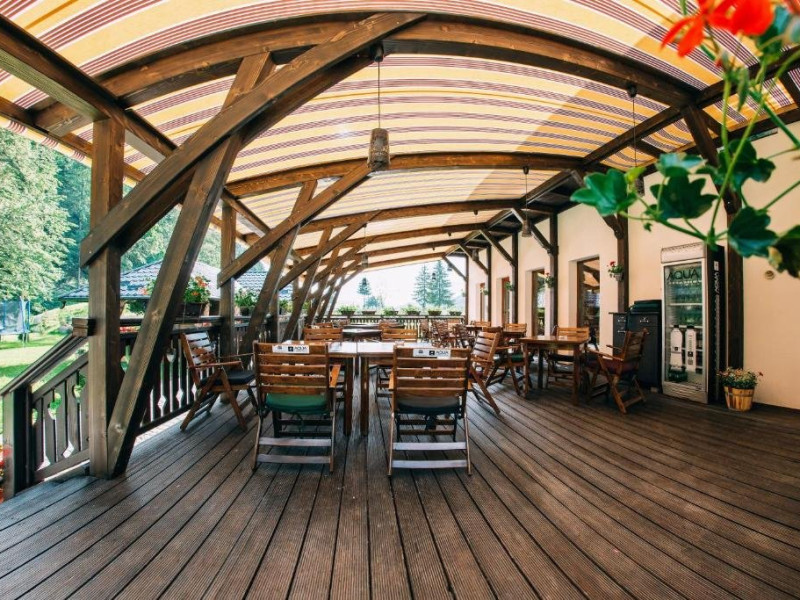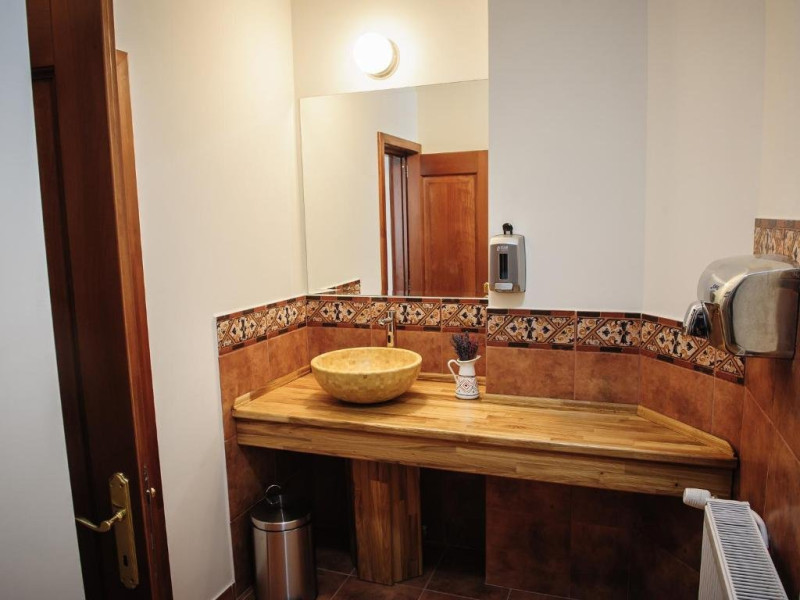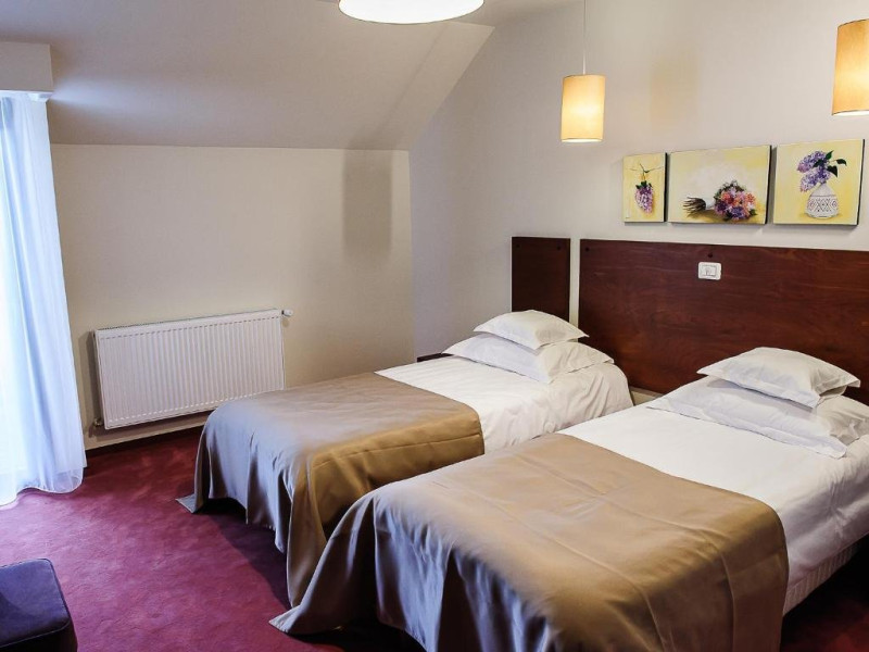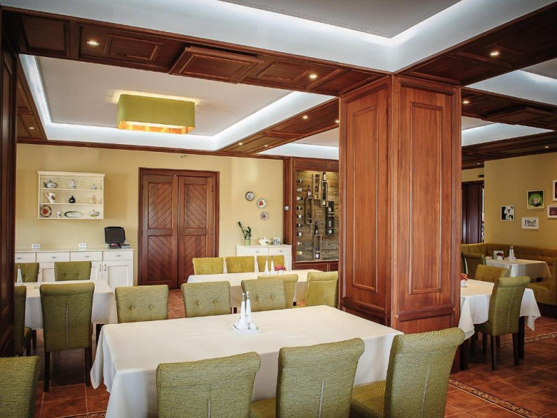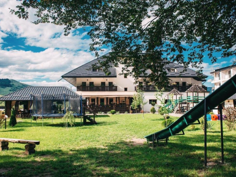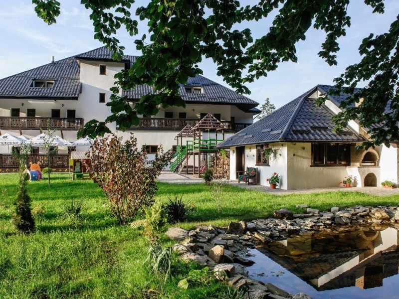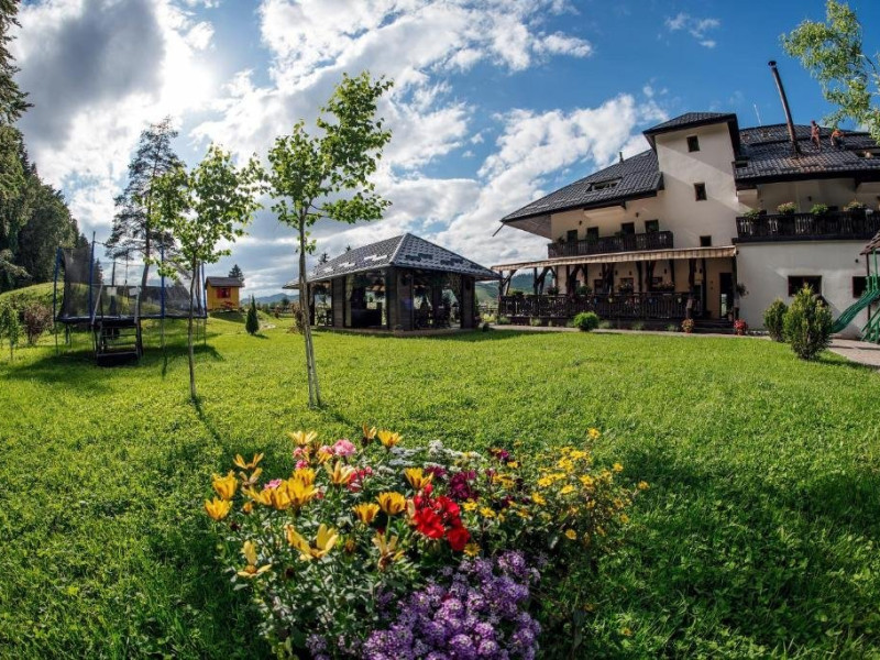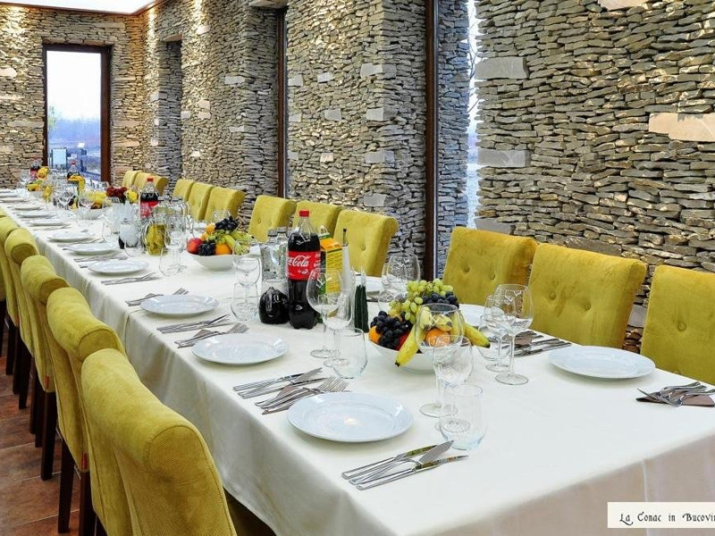 Localizare: Pensiunea La Conac in Bucovina este situata in Gura Humorului, in drum spre Partia Soimul (la o distanta de aproximativ 500m), avand o pozitionare excelenta fata de Parcul Arinis si fata de Manastirea Voronet (aproximativ 2km). Conacul dispune de 22 camere spatioase, decorate cu bun gust si eleganta, in nuante pastelate, structurate astfel: - 16 camere duble/twin; - 4 garsoniere cu pat matrimonial; - 2 apartamente CAZARE-FACILITATI/DOTARI CAMERE: - WI-FI - Minibar silenstios (0 decibeli) - TV LED HD - telefon - uscator par si priza in baie - baie cu cabina de dus - balcon/terasa proprie - incalzire centrala pe lemne - senzor fum in camere - economizor energie electrica - mocheta - papuci casa - cosmetice gama LUX TOATE CAMERELE SUNT DE NEFUMATORI Pensiunea mai are in dotare: - restaurant de nefumatori, cu meniu traditional, de 80-100 locuri, potrivit pentru a servi masa a la carte, dar si pentru organizari de evenimente private, petreceri corporate; - bar si zona lobby-bar conceputa intr-un stil aparte (arhaicul se imbina armonios cu modernul) si dotata cu canapele, fotolii, semineu si televizoare pentru petrecerea timpului liber, pentru a savura o cafea, cocktail, pahar de vin, toate insotite de o priveliste superba a padurii de brazi din spatele pensiunii - 40 locuri; - sala de conferinte - 40-50 locuri, in functie de aranjarea scaunelor, dotata cu videoproiector, flipchart si ecran proiectie; - loc de joaca interior, situat in imediata apropiere a zonei lobby-bar, astfel incat parintii se relaxeaza si copiii se pot juca in voie. Spatiul este dotat cu tobogan, masute si scaunele, jucarii, televizor; - zona de billiard; - SPA, cu jacuzii de 6 persoane, sauna, sala masaj, aparate fitness; - Mini-boutique - cu souveniruri si amintiri marunte din Bucovina; - parcare proprie; - casuta taraneasca, situata in curtea pensiunii, destinata petrecerilor campenesti, amenajata in stil bucovinean si respectand tehnici de lucru ca odinioara.Datorita dinamicitatii domeniului disponibilitatea ofertelor se modifica de la un moment la altul. De aceea ofertele sunt valabile in limita locurilor disponibile. Agentia nu este responsabila pentru eventualele neconcordante care pot aparea intre informatiile privind tarifele si alte detalii din site si informatiile primite in agentie. In aceste cazuri vor avea prioritate, intotdeauna, informatiile primite in agentie.