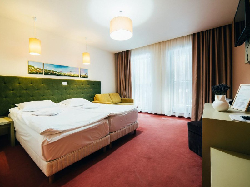 Zona SPA: piscine interioara ce include Jacuzzi si minipiscina pentru copii, hammam, sauna uscata, salina cu sare de la Praid, zona de masaj;