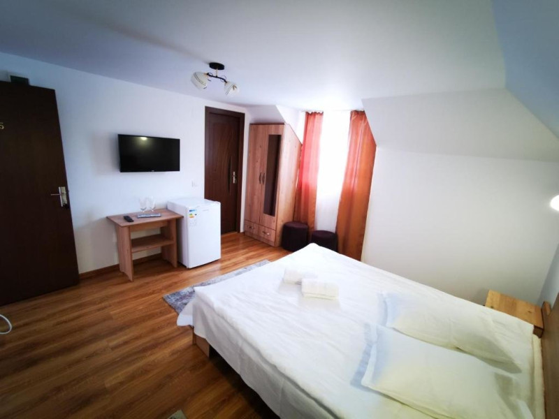 Hotel characteristics: ; 20 rooms Location: Want to save money while travelling? Itâs easy: hotel «Pensiunea La Ionica» is located in Fundata. This hotel is located in 4 km from the city center At the hotel: Spend an evening in a nice atmosphere of the bar. Want to be always on-line? Wi-Fi is available. Specially for tourists who travel by car, thereâs a parking zone. Get ready for a fun and exciting vacation! Hereâs what you will find on the premises: a picnic area and a barbeque area; There are other services available for the guests of the hotel. For example, a laundry and a safe-deposit box Room amenities: Guests will find the following in the room: a shower, a TV and slippers. Please note that the listed services may not be available in all the roomsDatorita dinamicitatii domeniului disponibilitatea ofertelor se modifica de la un moment la altul. De aceea ofertele sunt valabile in limita locurilor disponibile. Agentia nu este responsabila pentru eventualele neconcordante care pot aparea intre informatiile privind tarifele si alte detalii din site si informatiile primite in agentie. In aceste cazuri vor avea prioritate, intotdeauna, informatiile primite in agentie.