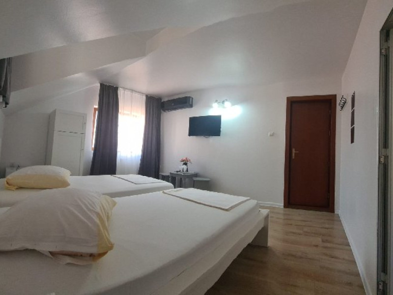 Camerele beneficiaza de mobilier nou, sistem de climatizare, televizor si CATV, telefon, frigider, acces gratuit la wi-fi, fiecare camera fiind dotata cu grup sanitar propriu cu dus.