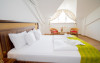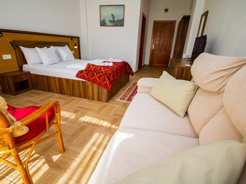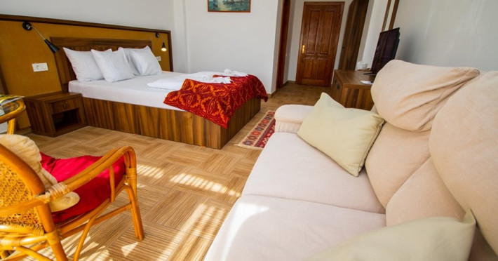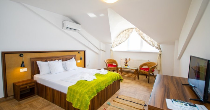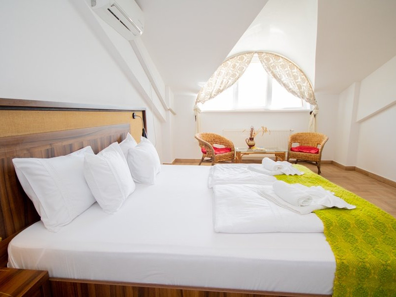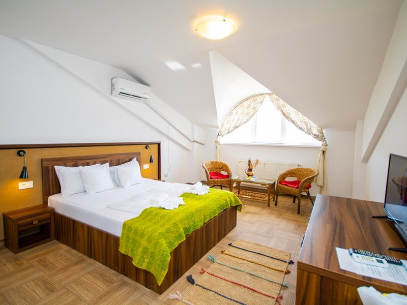 Camerele duble standard dispun de un pat matrimonial, iar camerele family dispun de pat matrimonial si canapea extensibila.