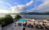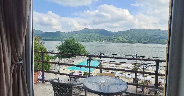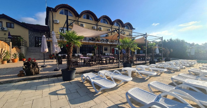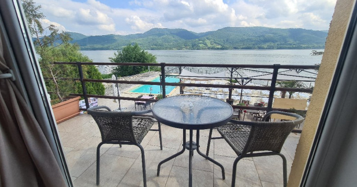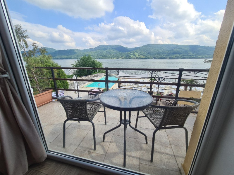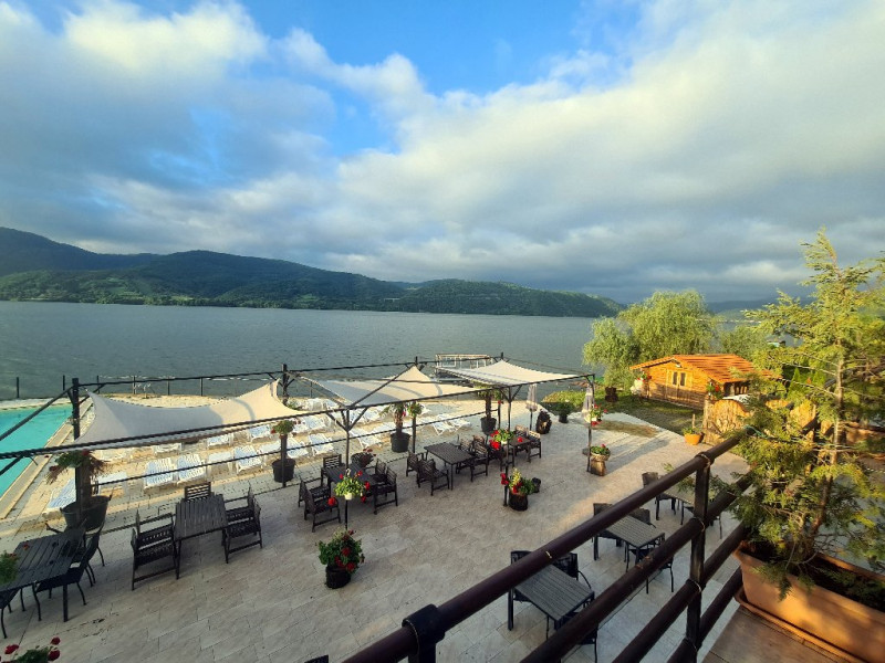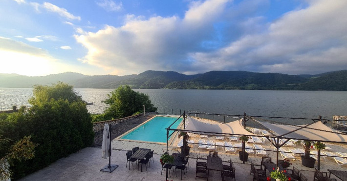 Dispune de piscina exterioara functionala doar in sezonul estival, restaurant, parcare si ponton, statie pentru incarcat masini electrice.