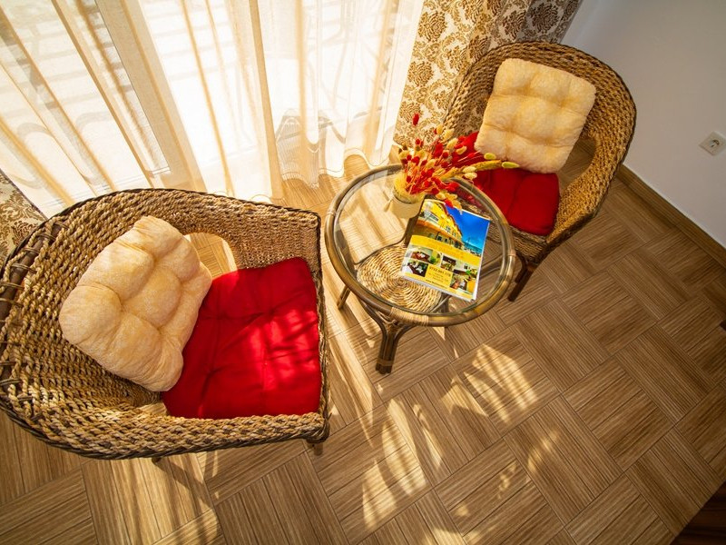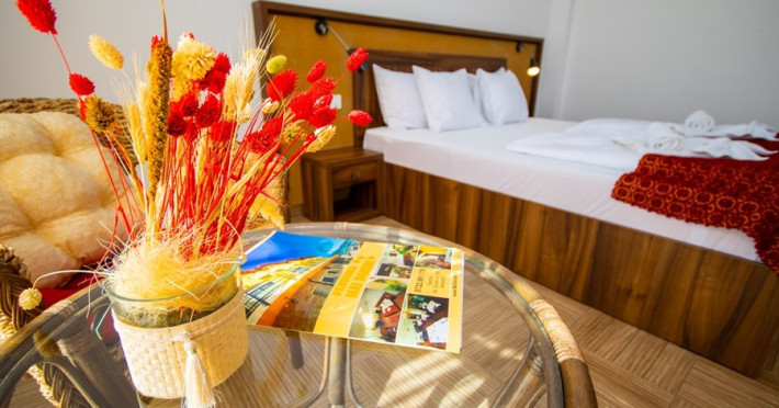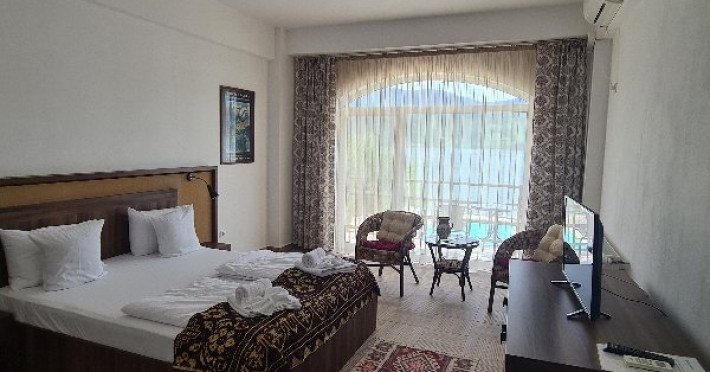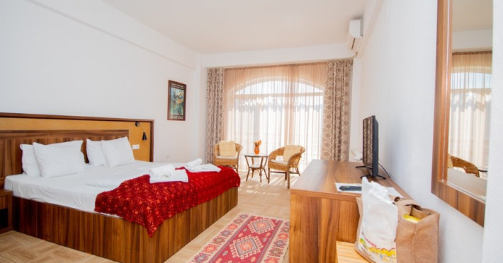 Toate camerele dispun de TV, baie proprie, aer conditionat si kit pentru piscina (papuci, prosoape).