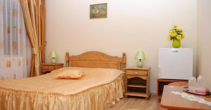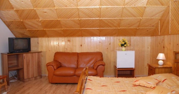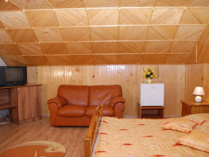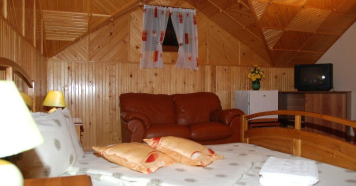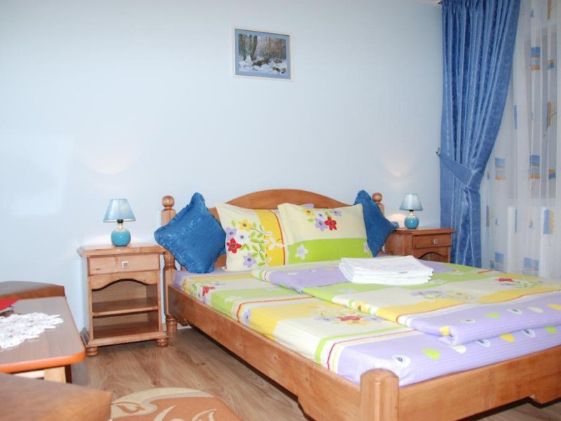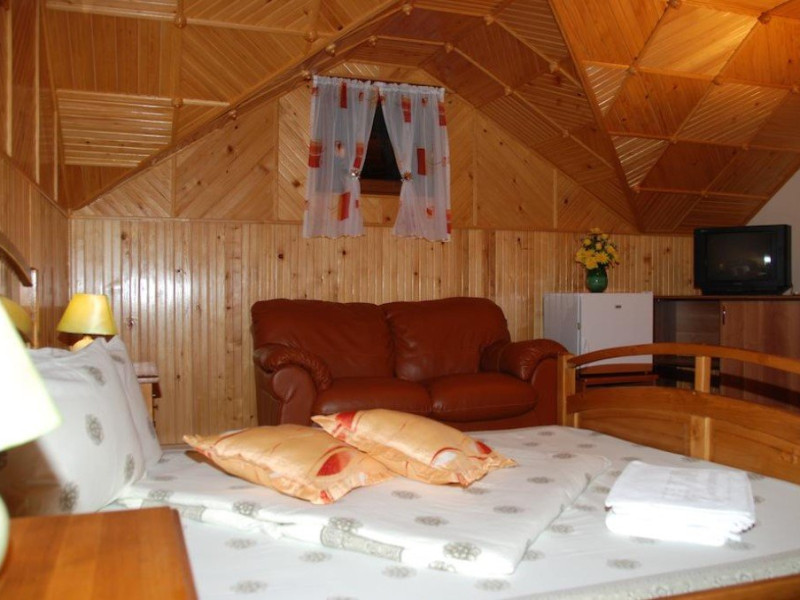 *la etaj se gasesc 6 camere duble cu pat matrimonial, iar la mansarda se gasesc 2 apartamente -fiecare cu 2cam cu pat matrimonial.