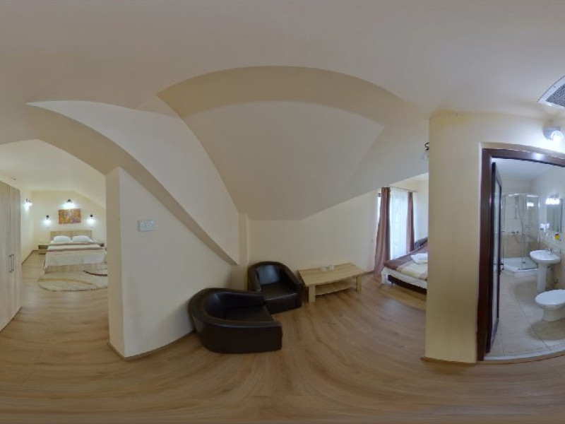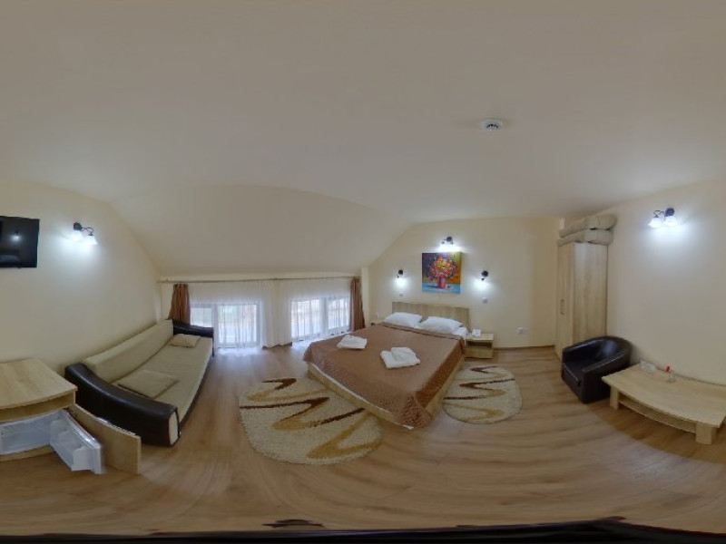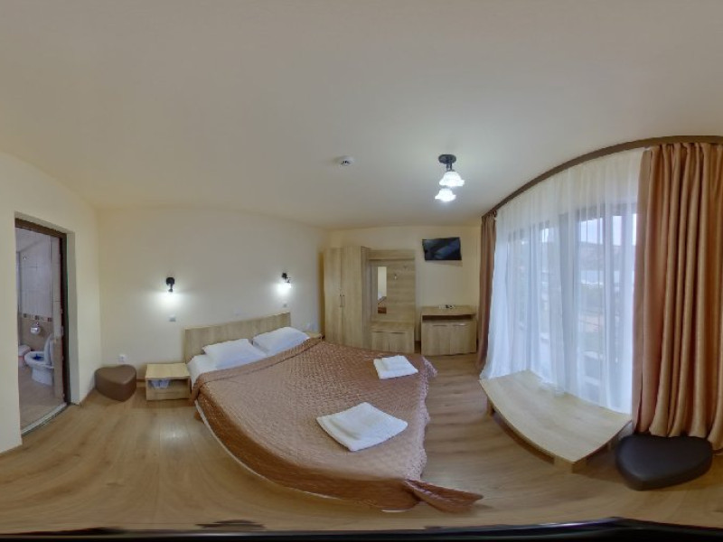 Camerele dispun de un pat matrimonial, iar unele camere includ si un fotoliu tip pat.Garsonierele dispun de un pat matrimonial si o canapea extensibila.