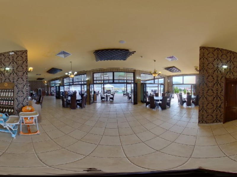 Mesele se servesc in restaurantul aflat in curtea comuna cu Pensiunea Melba.