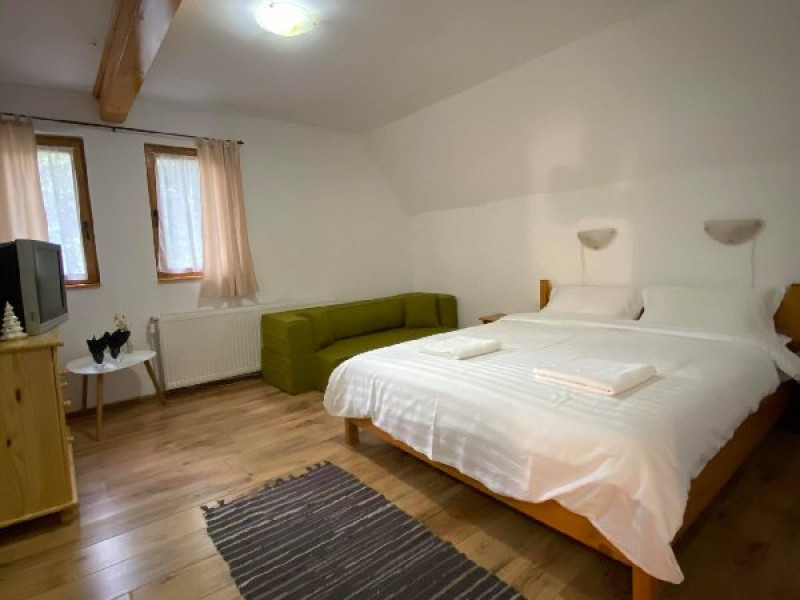 Camera 5 este un apartament cu 2 camere, are un pat matrimonial, o canapea extensibila si un pat single.