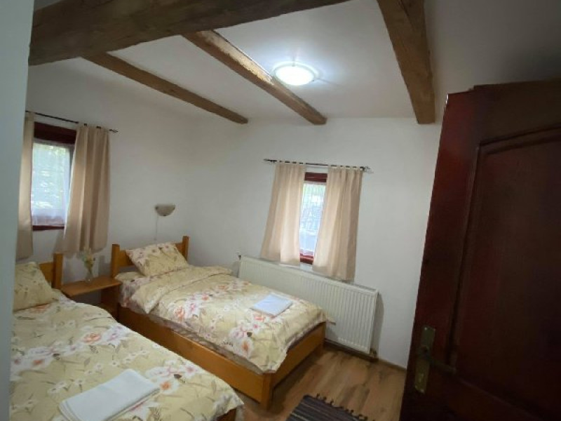 Aceasta pensiune dispune de 5 camere:Camera 1 are doua paturi single si un pat suplimentar pentru 1 copil (sub 12 ani)