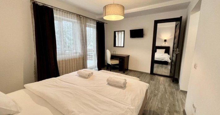 Hotel characteristics: ; 6 rooms Location: Want to save money while travelling? Itâs easy: hotel «Pensiunea Mirage» is located in Iasi. This hotel is located in 10 km from the city center At the hotel: You can stop by the bar. Free Wi-Fi is available on the territory. Ask for more information when checking in. If you travel by car, thereâs a parking zone. You will find these entertainment amenities on the premises: a barbeque area; You wonât have to leave your pet at home as they are allowed. The staff of the hotel will be happy to talk to you in English Room amenities: In the room, there is a TV. Please note that the listed services may not be available in all the roomsDatorita dinamicitatii domeniului disponibilitatea ofertelor se modifica de la un moment la altul. De aceea ofertele sunt valabile in limita locurilor disponibile. Agentia nu este responsabila pentru eventualele neconcordante care pot aparea intre informatiile privind tarifele si alte detalii din site si informatiile primite in agentie. In aceste cazuri vor avea prioritate, intotdeauna, informatiile primite in agentie.