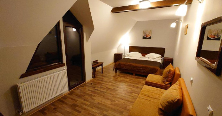 Pensiunea este singura din zona care asigura confortul unei pensiuni de 4 stele, construita prin program Sapard, cu dotari si servicii care se ridica la standarde europene de servicii hoteliere si alimentatie publica, cu restaurant de 3 stele pentru servirea mesei, dar care ofera si posibilitatea de a organiza petreceri si mese festive pentru diferite ocazii, salon 100 locuri, bar (20 locuri), terasa exterioara (50 locuri).