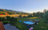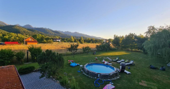 Facilitati: 3 camere matrimoniale cu bai proprii, 2 camere de familie cu bai proprii (3-6 persoane), servicii Spa Jacuzzi cu vedere la munte, srvicii masaj therapeutic cu roci vulcanice sau relaxant, living spatios ecran 4K - sistem audio, Wi-Fi + Netflix in toate camerele, loc de parcare, loc de joaca pentru copii, receptie - bar 24h - meniul zilei, pachete pentru seniori +55 cu tratamente incluse