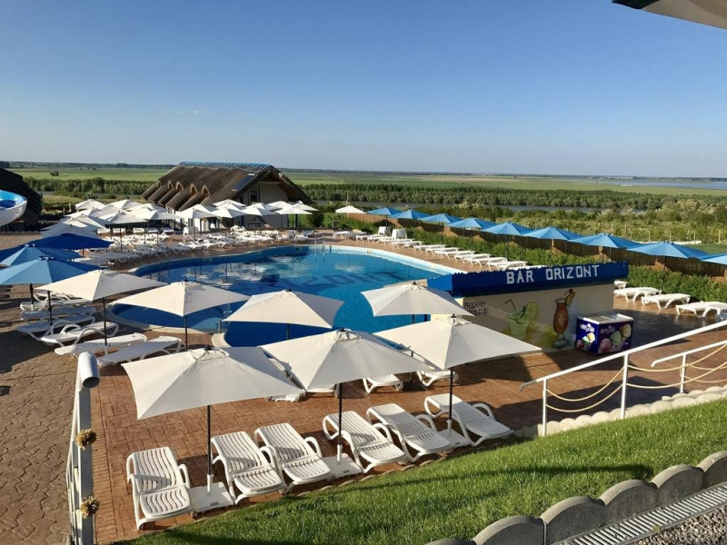 Pensiunea Orizont ***dispune de un restaurant fast-food care va intampina cu un ambient elegant, cu bucatari mereu pregatiti pentru a va incanta gusturile cu o mare varietate culinara si specialitati savuroase din peste si traditional romanesti preparate cu grija doar din ingrediente proaspete.Pensiunea Orizont *** are o piscina pentru adulti de 300 mp amplasata pe terasa a doua, departe de aglomeratia si zgomotele orasului dotata cu pool bar, piscina pentru copii de 7 mp.