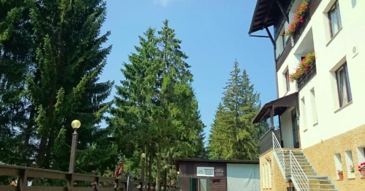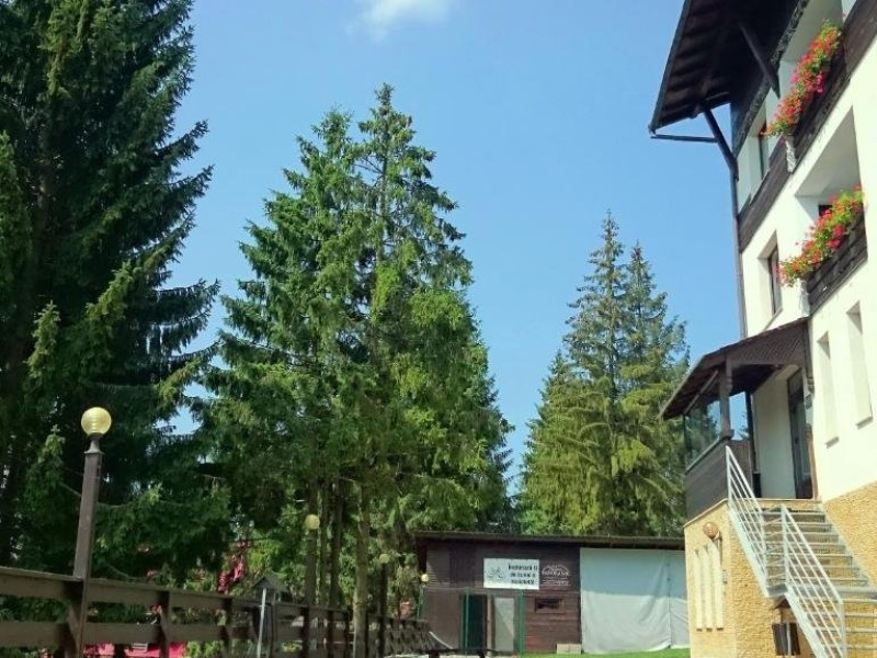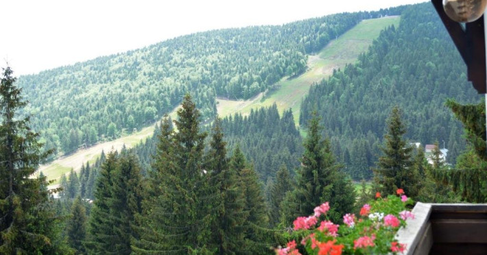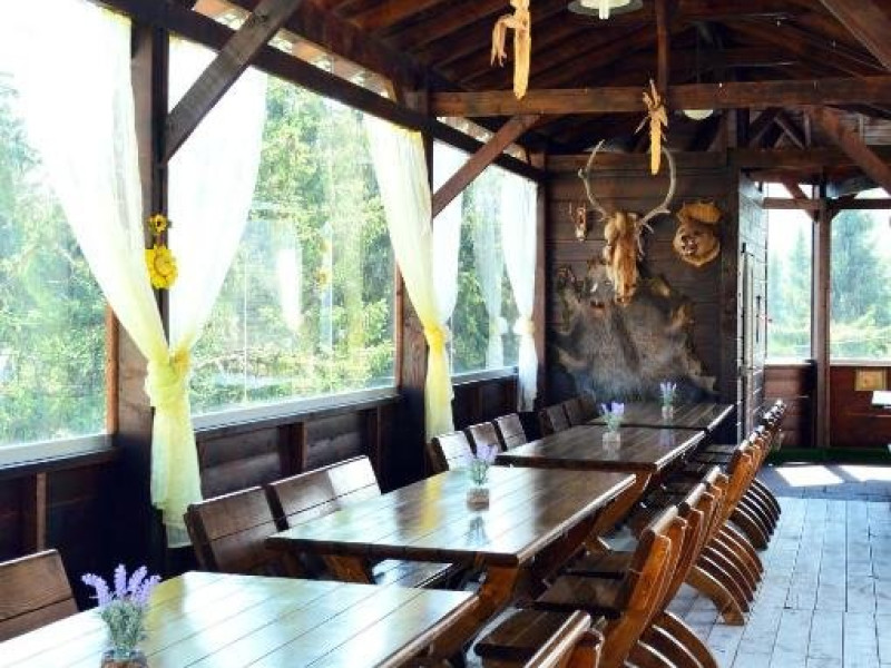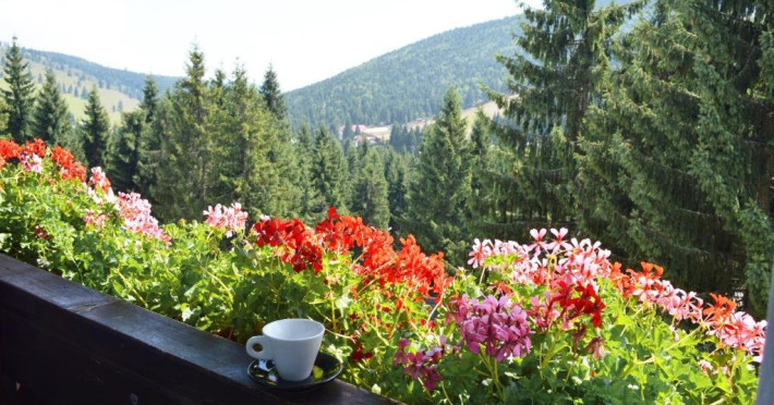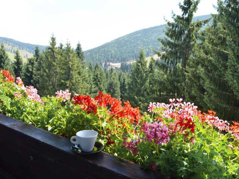 Masa poate fi servita si pe terasa, intr-un ambient de vis: inconjurat de brazi, printre veveritele jucause, respirand aerul curat de munte.
