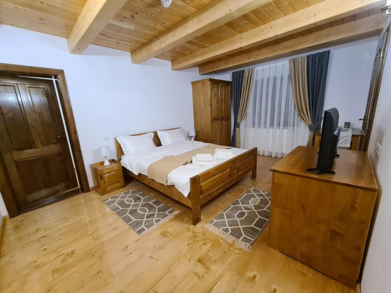 Pensiunea Popas in Apuseni din localitatea Rachitele, judetul Cluj, poate acomoda maxim 24 de persoane in 4 camere duble si 4 apartamente. Dispune si de living foarte spatios, ciubar, loc pentru foc de tabara, masa de tenis, masa de biliard.Se inchiriaza doar integral pentru minim 20 persoaneTariful pentru Revelion este calculat pentru 20 de persoane si include pensiune completa. Pentru fiecare persoana in plus pana la maximul de 24 se achita 1550 RON/persoana/sejur 3 nopti cu pensiune completa.