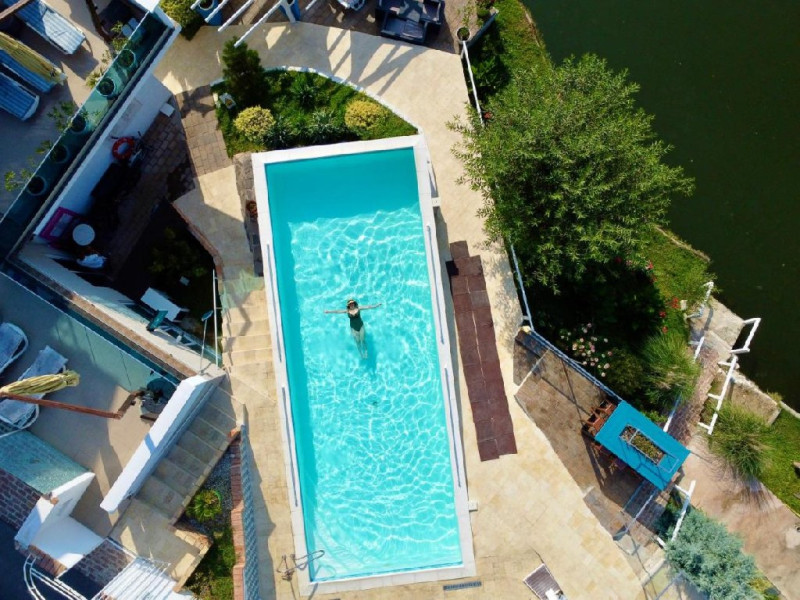 Spatiile comune includ un ponton pe Dunare, terasa, piscina cu sezlonguri, jacuzzi si posibilitate de petrecere a timpului liber prin plimbari pe Dunare cu barca. Locatia dispune si de parcare proprie.
