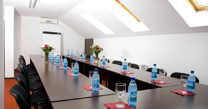 Sali de conferinta: 1 - Sala de conferinta are o capacitate de 40 de locur iin aranjament teatru si dispune de spatiu de servire coffee break, acces gratuit la internet, flipchart, videoproiector si aer conditionat.