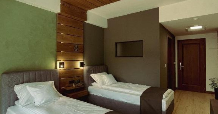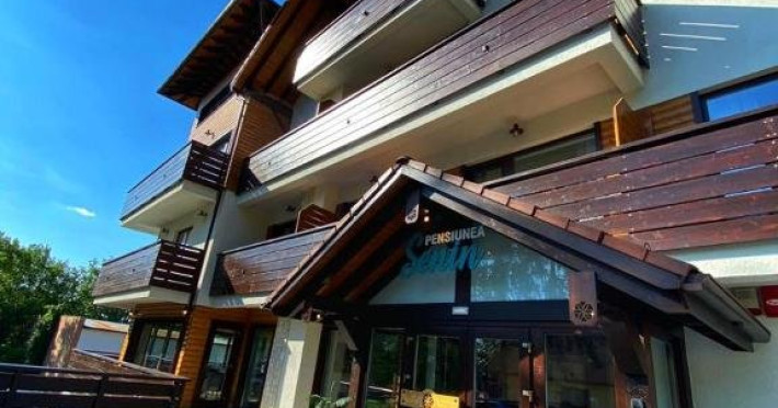 Pensiunea Senin - clasificata 3 stele, este situata in Sovata, la doar cateva minute distanta de Lacul Ursu, principalul obiectiv turistic din statiune, care este si unicul lac helioterm din Europa si cel mai mare astfel de lac din lume.Pensiunea asigura cazare in 19 camere si apartamente, centrul Spa cu piscina cu apa dulce, jacuzzi cu apa dulce, sauna finlandeza, terasa pentru plaja, sala de conferinta pentru cca 30 persoane, un restaurant modern si terase pentru relaxare.Structura de cazare: - 9 Camere duble matrimoniale cu balcon