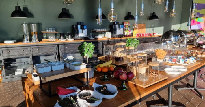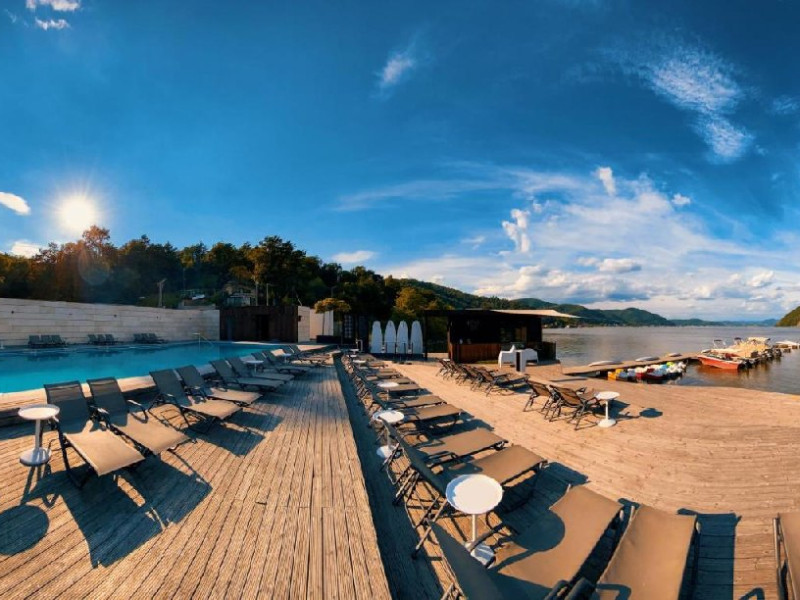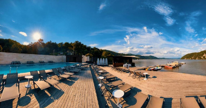 Spatiile comune includ un ponton pe Dunare, terasa, piscina exterioara cu bar si sezlonguri, restaurant, sala de conferinte, posibilitate de petrecere a timpului liber prin plimbari pe Dunare cu hidrobiciclete, caiace sau stand up paddle. Locatia dispune si de parcare proprie.