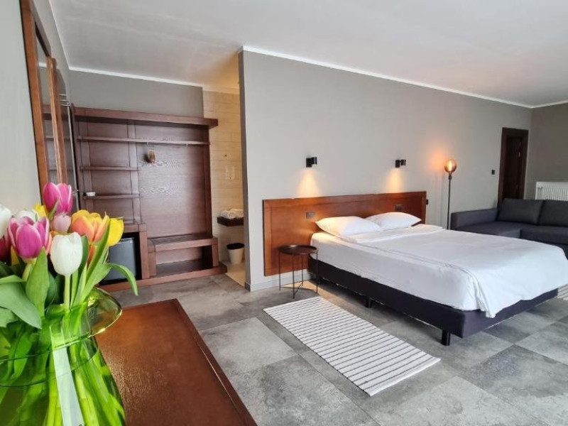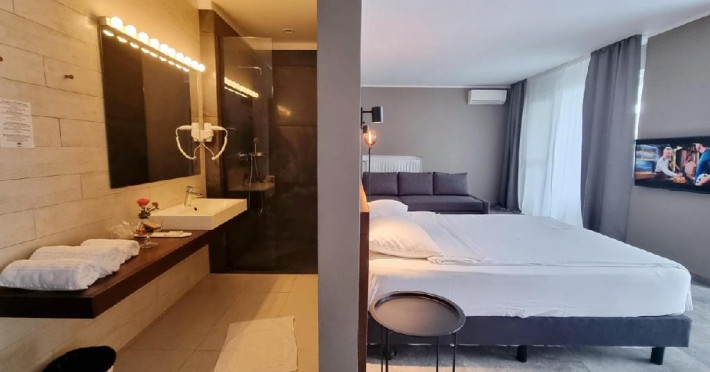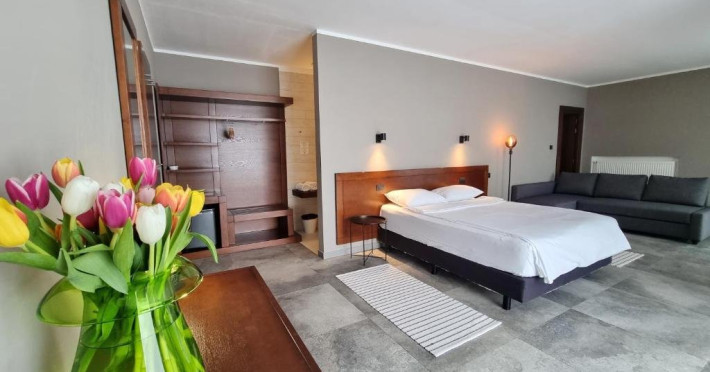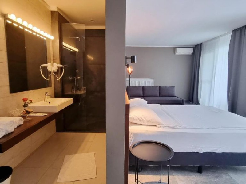 Camere duble dispun de un pat matrimonial, iar apartamentul este de tip studio cu o incapere in care se afla patul matrimonial si o canapea extensibila.