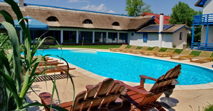 Gradina amenajata asteapta oaspetii cu terasa acoperita si sezlonguri. La pensiune se pot inchiria barci private.