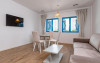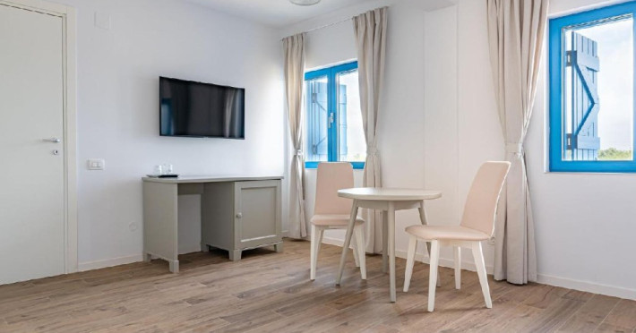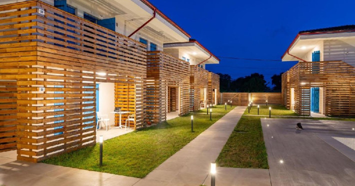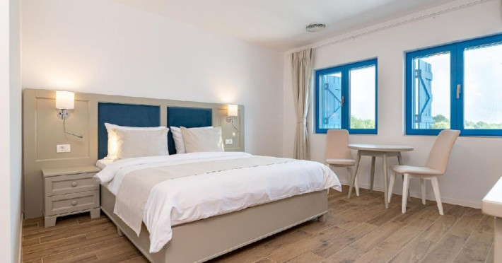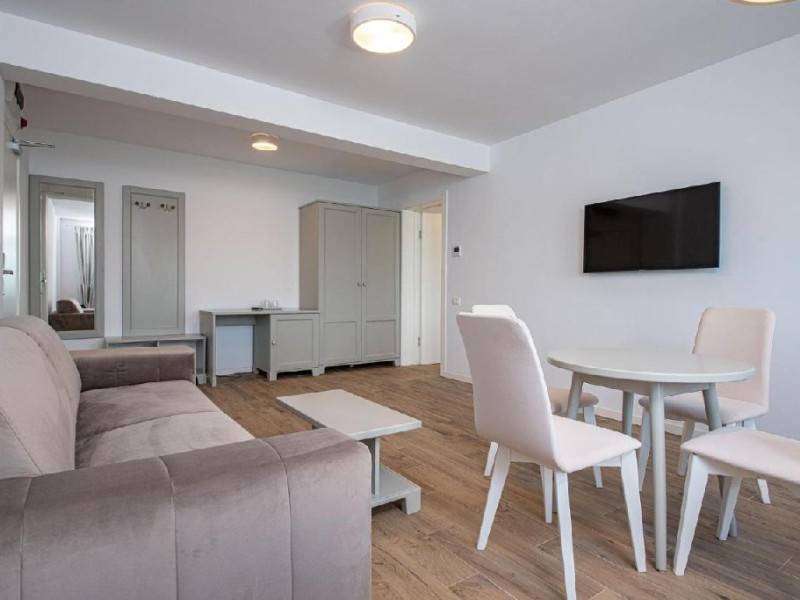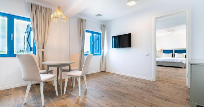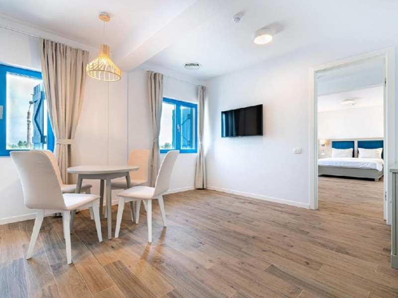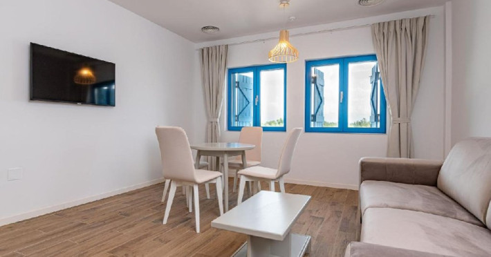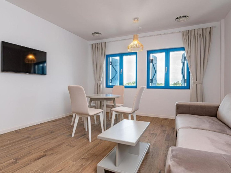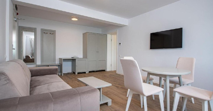 Apartamentele se afla in modulul comun cu receptia si restaurantul si ofera un living cu canapea extensibila, un dormitor cu pat matrimonial si o baie cu intrare din dormitor.
