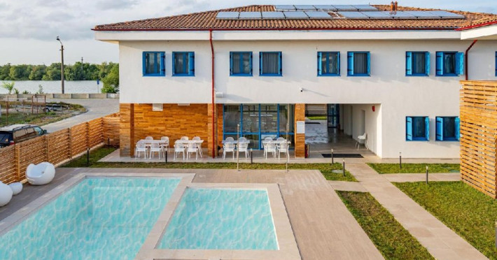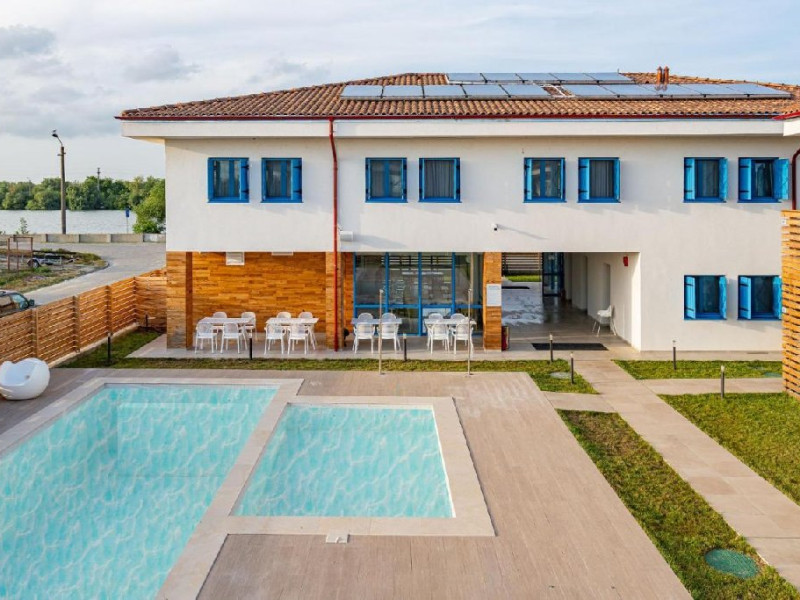 Unitatea de cazare dispune de restaurant, terasa, ponton, piscina exterioara, serviciu de inchiriere biciclete, microbuz pentru transport catre plaja Sulina, posibilitatea de organizare excursii cu barca.