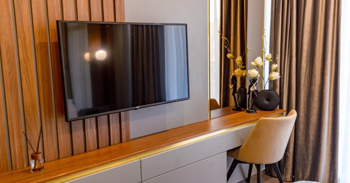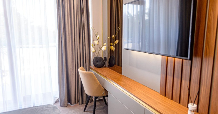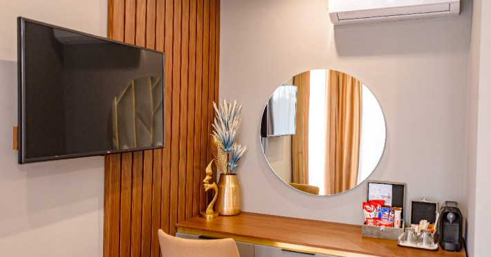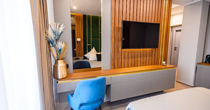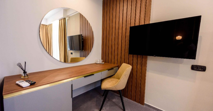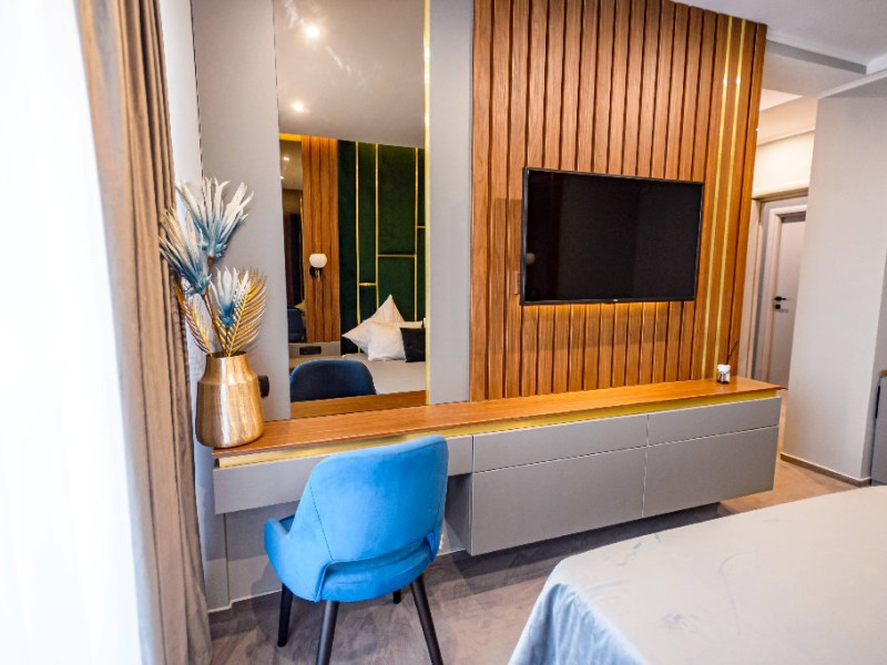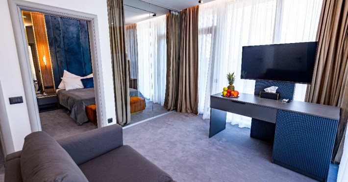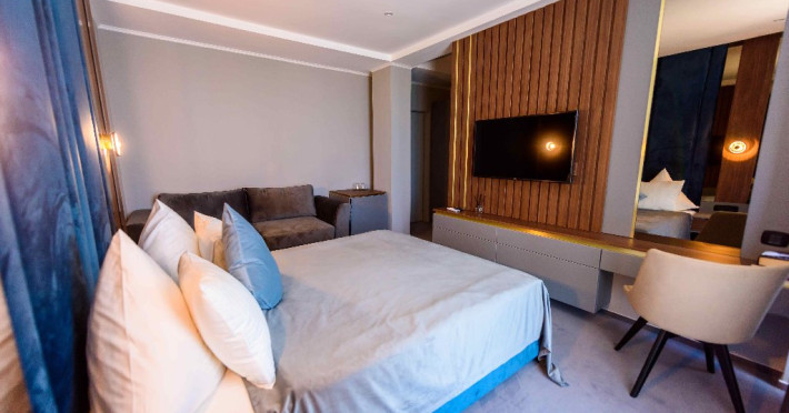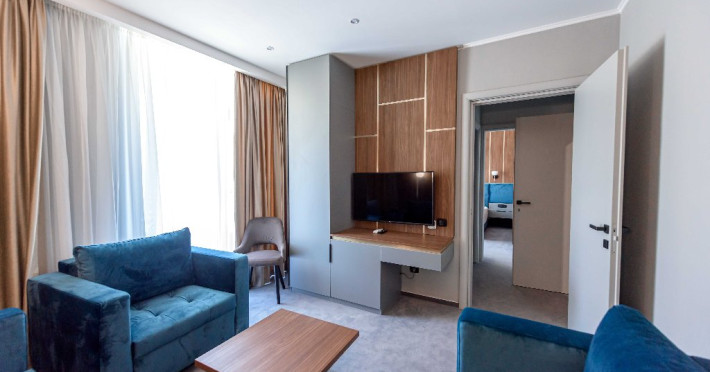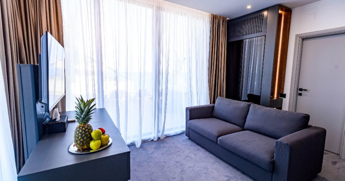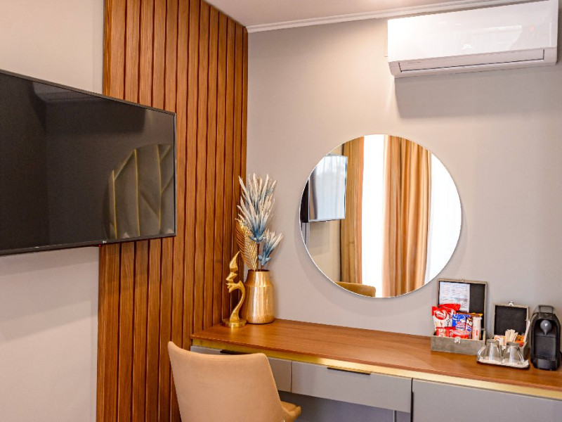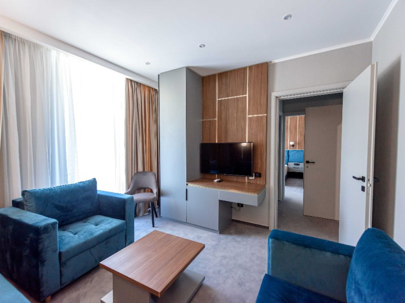 Dotari camere: Aer conditonat, baie cu dus, papuci de casa, uscator de par, televiziune prin cablu/satelit, minibar, balcon sau terasa, fier de calcat, fierbator pentru apa/filtru de cafea, birou.Apartamentele dispun de living cu canapea extensibila si dormitor cu pat matrimonial.