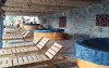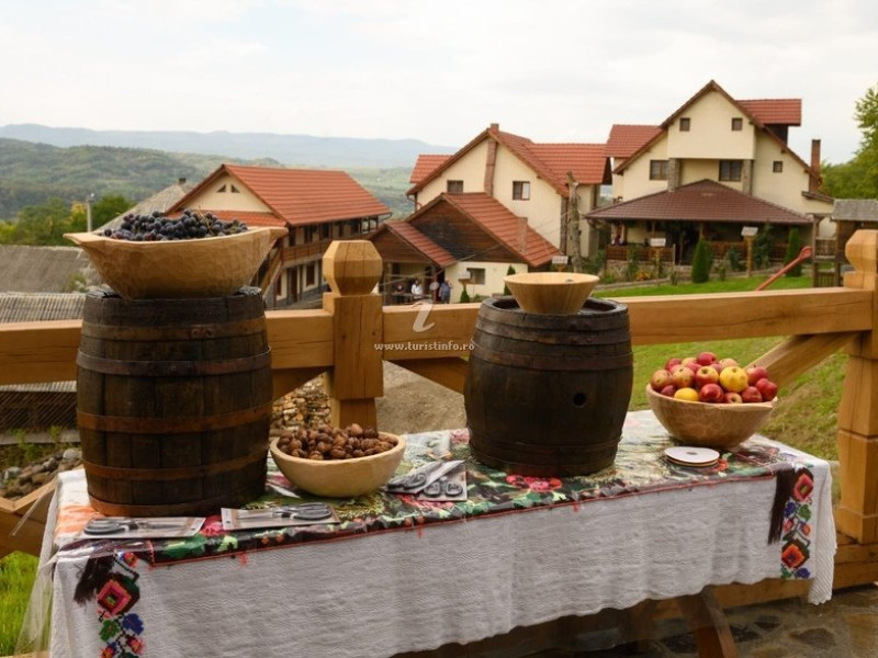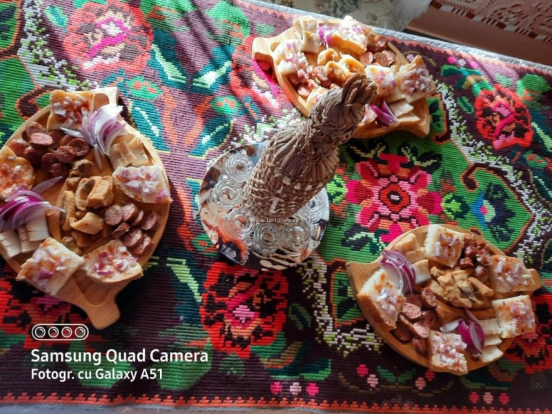 Din meniu: platouri cu aperitive traditionale, supa de pui, ciorba de legume, fasole cu ciolan, gulas, piure de cartofi cu friptura, tocana cu carne si jumari, mamaliga cu branza, balmos, sarmale cu crnati, placinte cu branza si smantana, branza de vaca cu grostior, pancove, prajituri. Si in special nemaipomenita horinca
