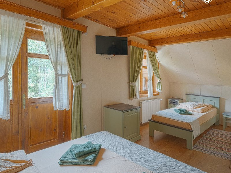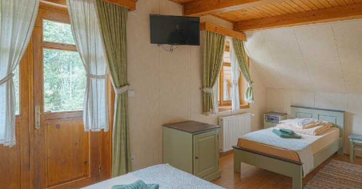 INFORMATII GENERALE:Pensiunea Vanatorul este situata in centrul statiunii Baile Tusnad, dispune de 35 de locuri de cazare in 15 camere cu 2 sau cu 3 locuri.Toate camerele au baie proprie cu dus, prosoape si articole de toaleta gratuite, tv cu acces la internet wi-fi gratuit, frigider. Unele camere dispun de terasa cu vedere la munte. Etaje superioare accesibile doar pe scari.