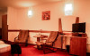 Restaurantul serveste o gama de mancaruri romanesti. Meniuri speciale de dieta sunt disponibile la cerere. La bar puteti sa savurati o gama de bauturi.