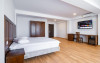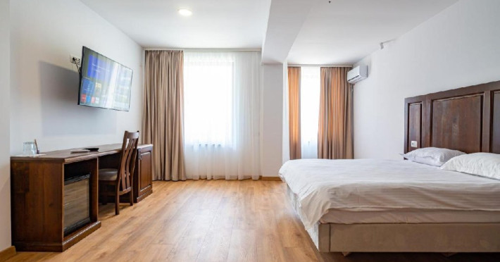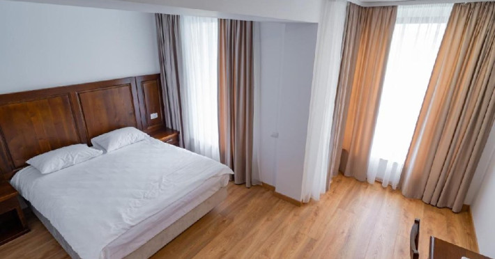 Camera dubla family (11) dispune de pat matrimonial (160x200) si o canapea extensibila (160x200 extinsa), LCD tv, minibar, aer conditionat, incalzire in pardoseala, podele de parchet, wifi, acces pe baza de card magnetic, baie cu dus si uscator de par, balcony. Suprafata 44 mp (inclusiv balcon).