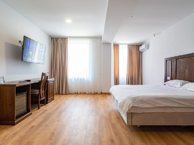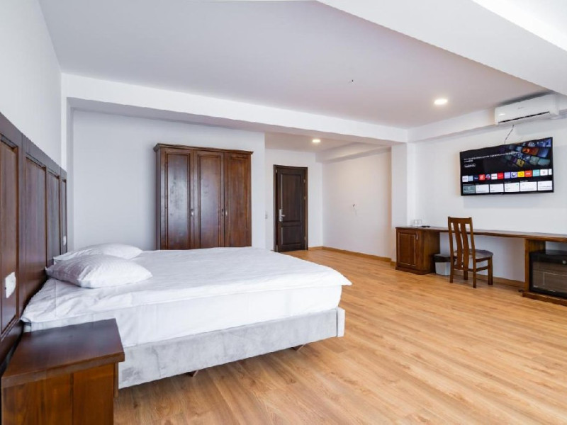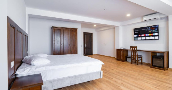 Camera dubla family (11) dispune de pat matrimonial (160x200) si o canapea extensibila (160x200 extinsa), LCD tv, minibar, aer conditionat, incalzire in pardoseala, podele de parchet, wireless internet, acces pe baza de card magnetic, baie cu dus si uscator de par, balcony. Suprafata 44 mp (inclusiv balcon).