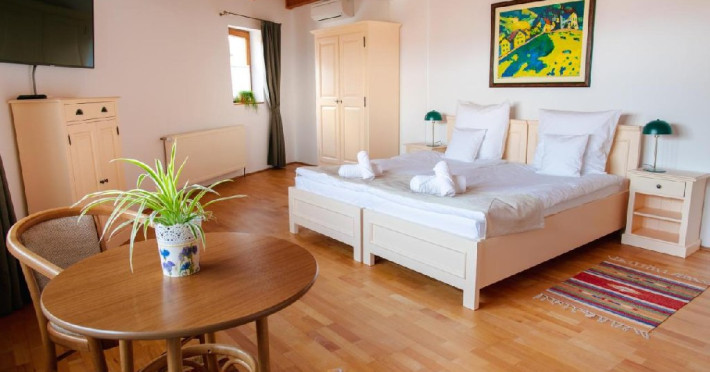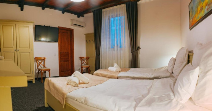 Camerele pensiunii se afla la etajul 2 si la mansarda, si sunt dotate cu aer conditionat, incalzire centrala, TV cu ecran plat, frigider, wi-fi gratuit si baie privata cu dus, articole de toaleta gratuite si uscator de par.
