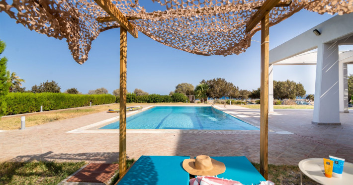 Villa “The Perfect Beach House” is built in an ideal location just on the beach of Lachania. It is surrounded by a huge field and offers privacy but also access to a secluded part of the beach.Villa “The Perfect Beach House” is built in an ideal location just on the beach of Lachania. It is surrounded by a huge field and offers privacy but also access to a secluded part of the beach.