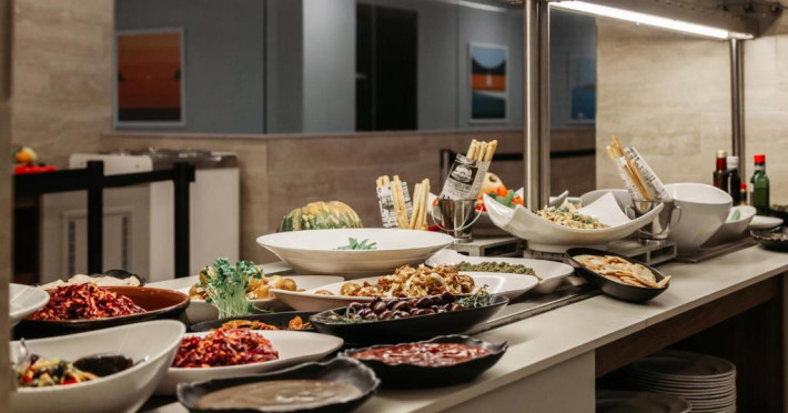 Pentru masa de pranz și cină, oaspeții au la dispoziție o gamă largă de restaurante, toate servind o gamă variată de preparate delicioase mediteraneene. Lounge barul oferă muzică live, fiind locul ideal pentru a incheia ziua cu stil.