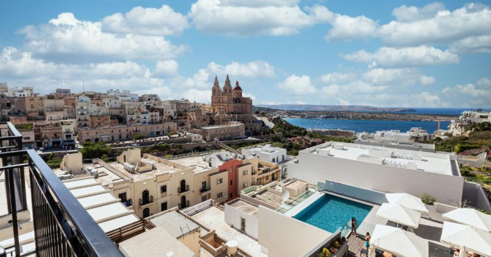 Construit pe marginea unei văi din Mellieha, acest hotel oferă vedere splendidă la biserică, la golf, la insulele Gozo si Comino, precum si la sat.