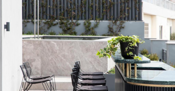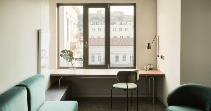 Combinand decorul in stil retro cu elemente moderne, fiecare cameră si suită de la Perianth include un birou si o baie modernă cu detalii din marmură neagră. Fiecare unitate are TV cu ecran plat, aparat de cafea, seif si dulap. Anumite unităti se bucură de un balcon, iar unele oferă vedere la Acropole.