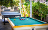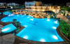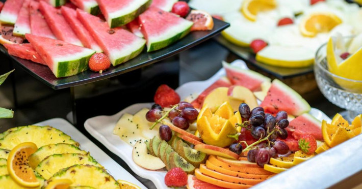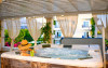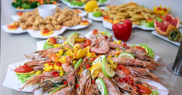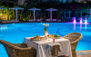 Micul dejun și cina sunt servite in stil bufet, in timp ce pranzul poate fi savurat pe veranda snack barului. Se organizează periodic seri grecești cu muzică live tradițională.