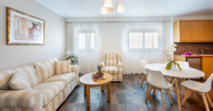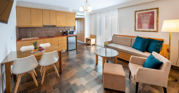 La cațiva pași de plajă și de centrul insulei Kos, Peridis Family Resort, de 5 stele, este format din 5 clădiri, 2 piscine mari și un restaurant tip bufet. Oferind cazare in regim self-catering, acesta dispune și de un teren de tenis și facilități de volei pe plajă.